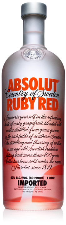 Absolut Ruby Red was introduced in 2006, following the success of the other citrus flavors, Absolut Citron and Absolut Mandrin. The name Absolut Ruby Red is taken from a special kind of red grapefruit. And grapefruit is of course what it tastes like!